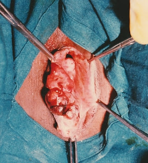 Patient ‘L’ , aged 18 rears, para one presented with the complaint of gradually enlarging swelling over Labia minora since last five months. There was no history of pruritus Vulvae, contact or Syphilis. There was no family history of such a disease.Her menstrual cycle was normal with average flow and it was painless. She had full term normal delivery one and half years back., there was no history of abortion or pre mature delivery.